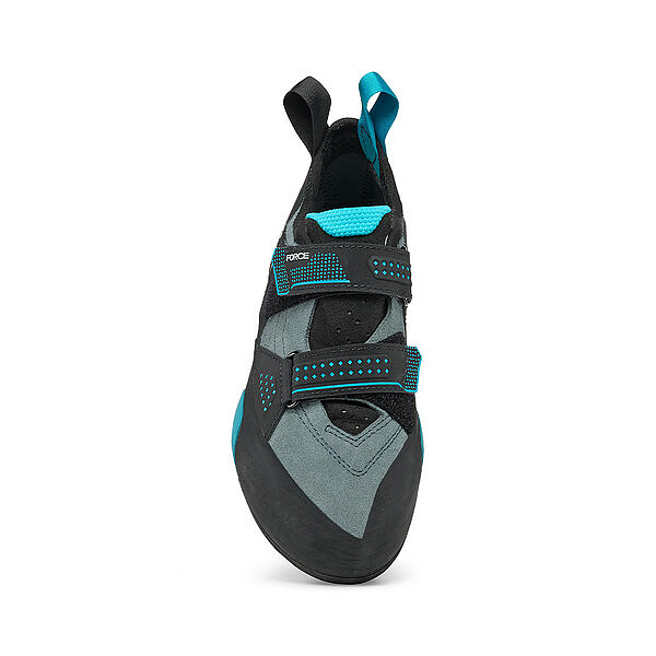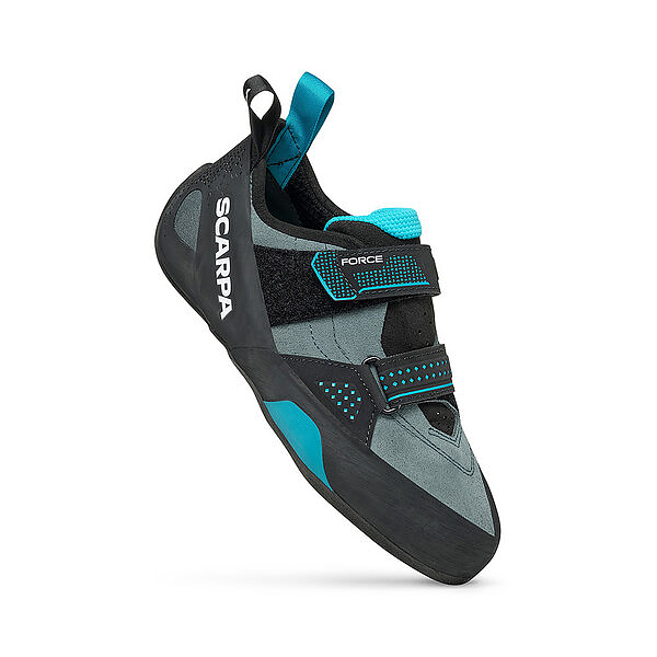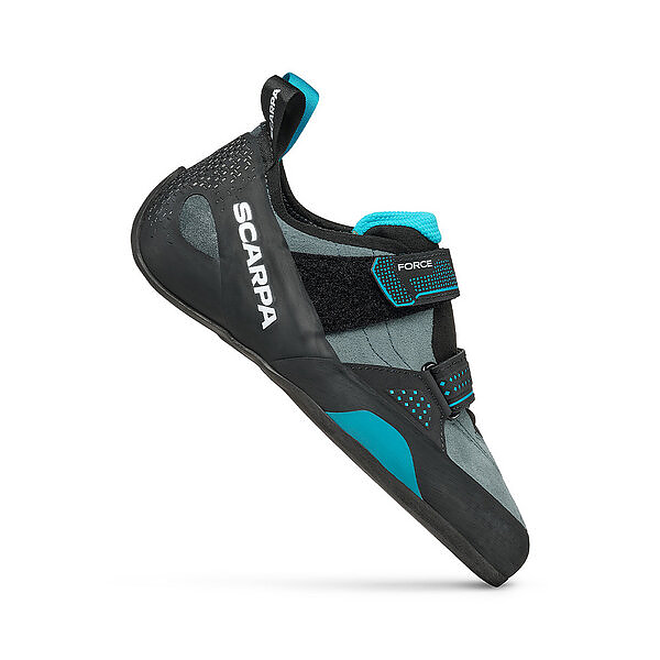 Force v offers the perfect blend of comfort and technology. with a flat and neutral shape and low angled toe box it excels in all day climbing.
