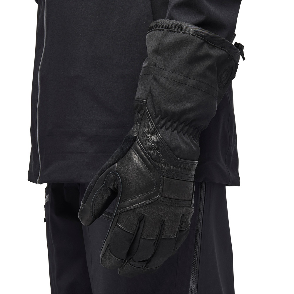 Our warmest ski gloves, the Black Diamond Guide gloves fend off the coldest and wettest conditions with a combination of removable PrimaLoft® One and boiled wool liners, and fully waterproof and breathable GORE-TEX®. The woven, four-way stretch nylon shells and tough goat leather palms provide the durability and dexterity needed for season after season in harsh mountain conditions.